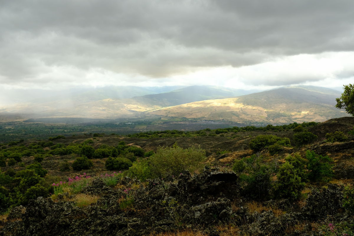 Posté(e) 7 juillet 20223 a comment_96948 Paysage nuageux voici un mois, pente nord de l'Etna à partir de la piste Altamontana. Fujifilm X100, 400ISO Deux clichés de la même atmosphère avec deux traitements. Que choisir ? Jpeg direct de l'appareil avec simulation de film Velvia Ambiance sombre fantasmagorique, inquiétante
