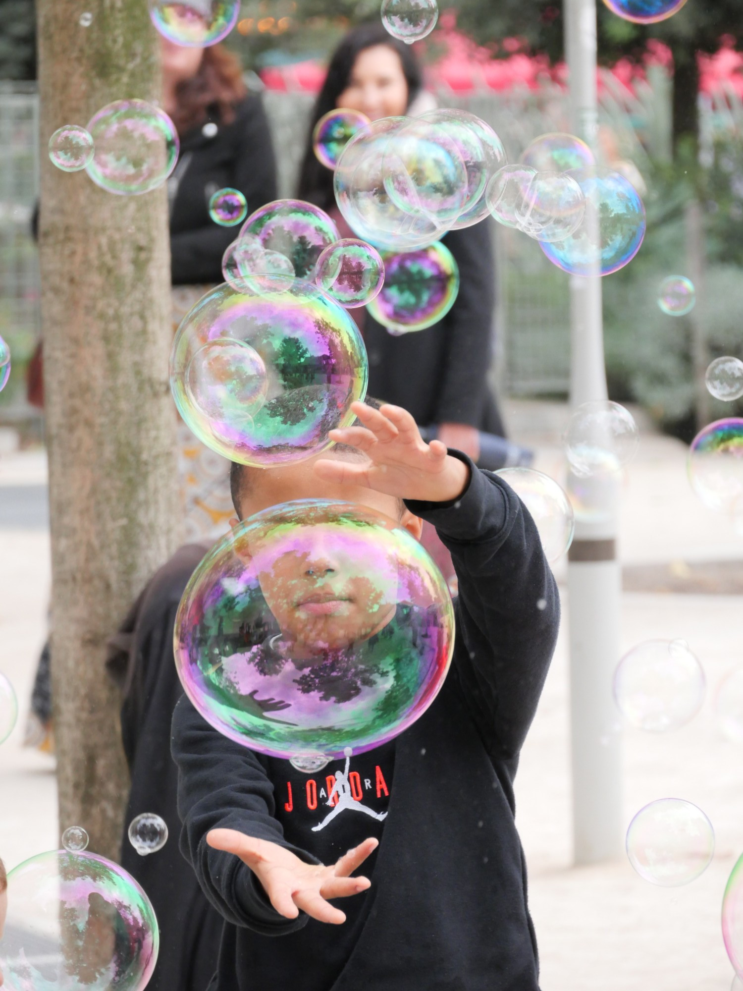 J'avais pas remarqué mais le petit Mikael Jordan semble accroché à la bulle.... c'est marrant
