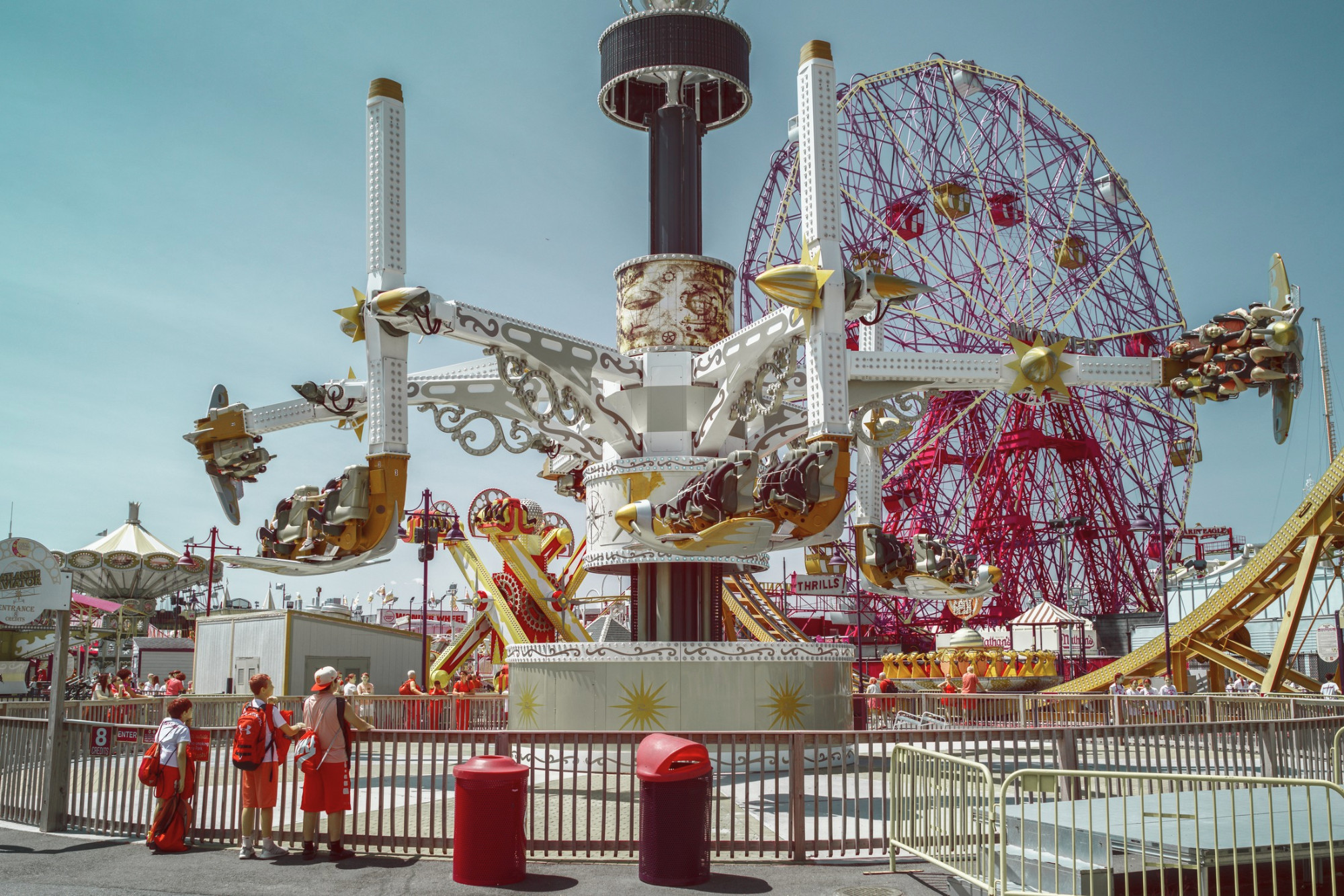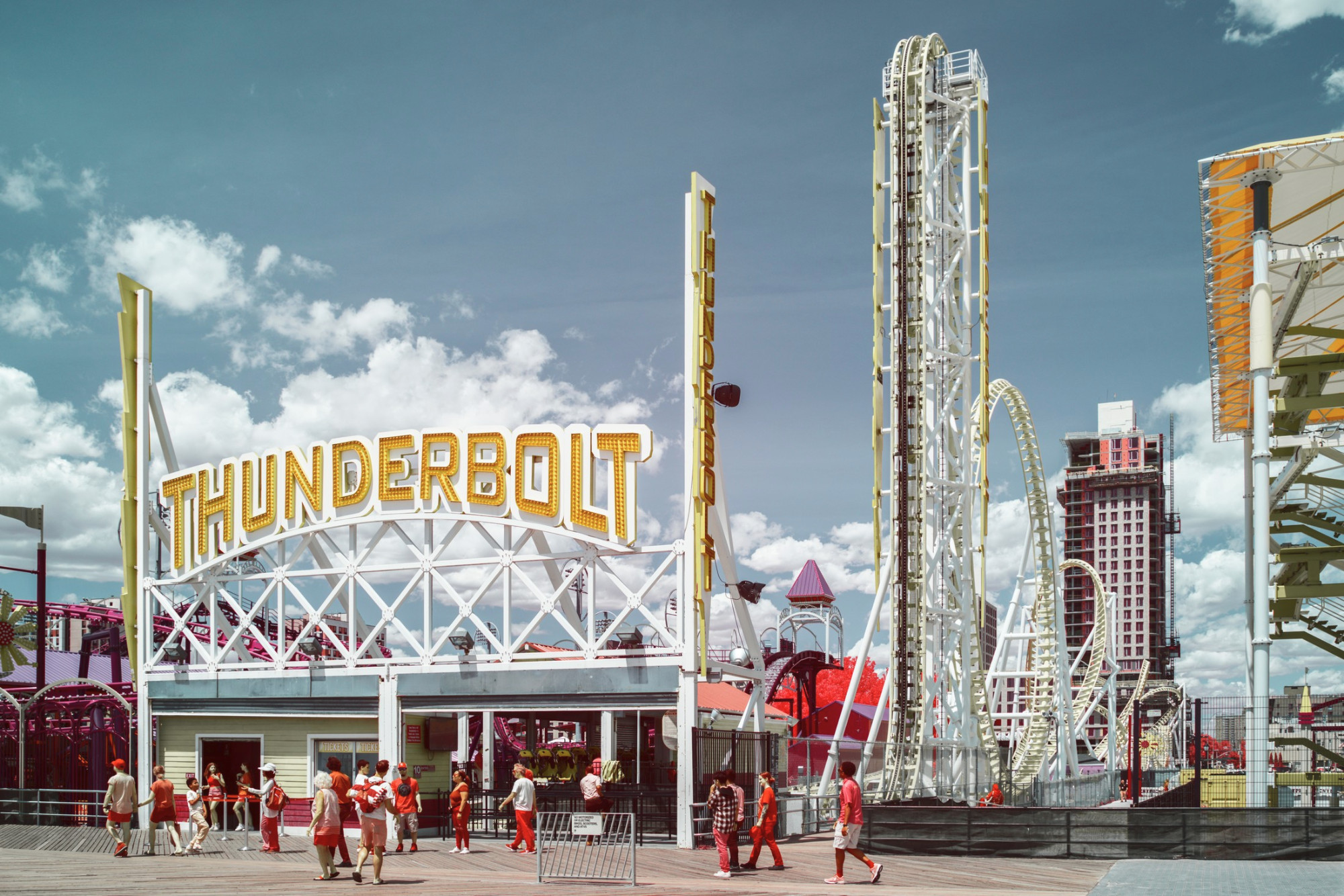 Posté(e) 28 août 20232 a comment_102048 Bonjour à tous, Ayant passé deux semaines à New York, j'ai passé une journée complète à Coney Island. Je ne savais pas à quoi m'attendre, ayant déjà vu plusieurs séries sur ces parcs d'attractions. Au final, cette journée fut tout simplement magique : Coney Island est bien plus qu’une attraction touristique, c’est un mélange de gens à la recherche d’une bulle de déconnexion. Niveau photo, j'étais parti léger, ici avec deux focales fixes : un 35mm et un 100mm. Le rendu des couleurs est dû à l'utilisation d'un appareil converti pour la technique infrarouge, et simulant le rendu Aerochrome de la pellicule Kodak.