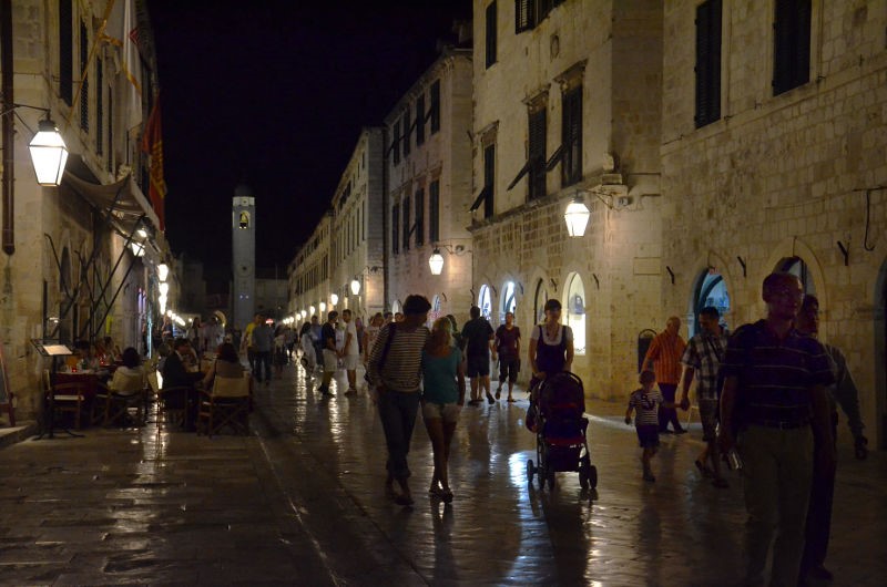 Posté(e) 27 septembre 201213 a comment_40757 Hello, Voici une vue nocturne de la rue principale de Dubrovnik. Il y a un joli reflet sur le sol car toutes les rues sont pavées en dalles de calcaire, patinées par les siècles. EXIF : Nikon D7000; Focale (equiv.35mm) 50mm; 1/125s; f/5.6; ISO 4000. Ici c'est un instantané classique, mais j'ai vu un photographe qui avait posé son appareil sur le sol, avec un temps de pose de 15s (je ne suis pas sùr de la durée, car il ne parlait que le croate). Il m'a montré le résultat : la rue était vide malgré la foule de touristes présents. Je crois que cette technique est appelée pause longue. Avez-vous déjà essayé cette technique ? ce serait sympa. de montrer qq. exemples