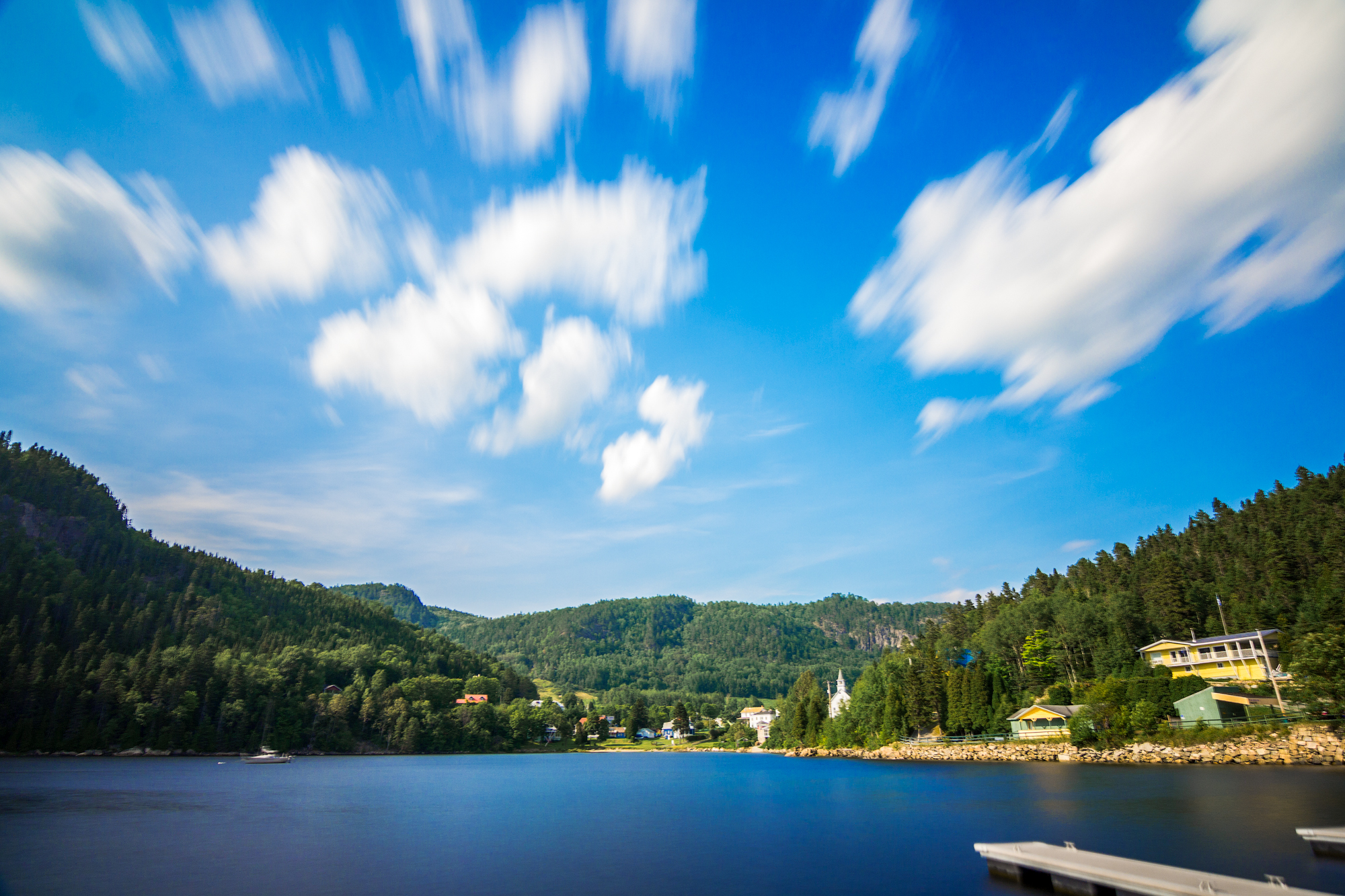 Posté(e) 30 mars 201510 a comment_56947 Hello ! J'ai un peu le même avis que les autres. Trop de ciel pour moi aussi et bien qu'il y ait un beau filé de nuages, c'est trop pour moi. Après, le flou, on dirait vraiment un flou du au vent donc dommage Après pour pinailler un peu, tu gagnerais à affiner un peu tes masques de fusion (je pense) car on voir des changements de saturation sur la cime des arbres qui font un espèce de halo (assez léger je te l'accorde). Surtout sur les arbres en arrière plan (à droite). Pour les couleurs, je dirais aussi juste le bleu un peu trop poussé, et comme Flo, c'est vachement plus saturé à droite qu'à gauche (sur l'eau)