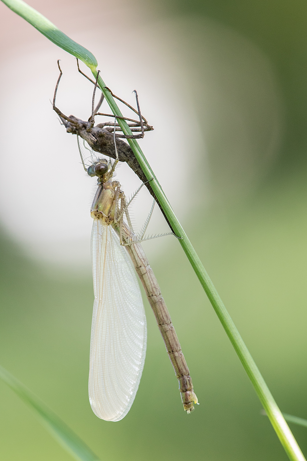Posté(e) 8 mai 20169 a Auteur comment_72172 Bon, c'est plus pour le partage car je n'ai rien réussi à faire de bien (difficulté pour approcher), j'ai fait ces 2 photos à bout de bras. Certainement une exuvie (surement d'une libellule déprimée, sur ce spot), je pensais que c'était la larve au début : Et l'émergence d'un agrion : Malgré les difficultés pour observer ce phénomène, ça reste vraiment un moment sympa.