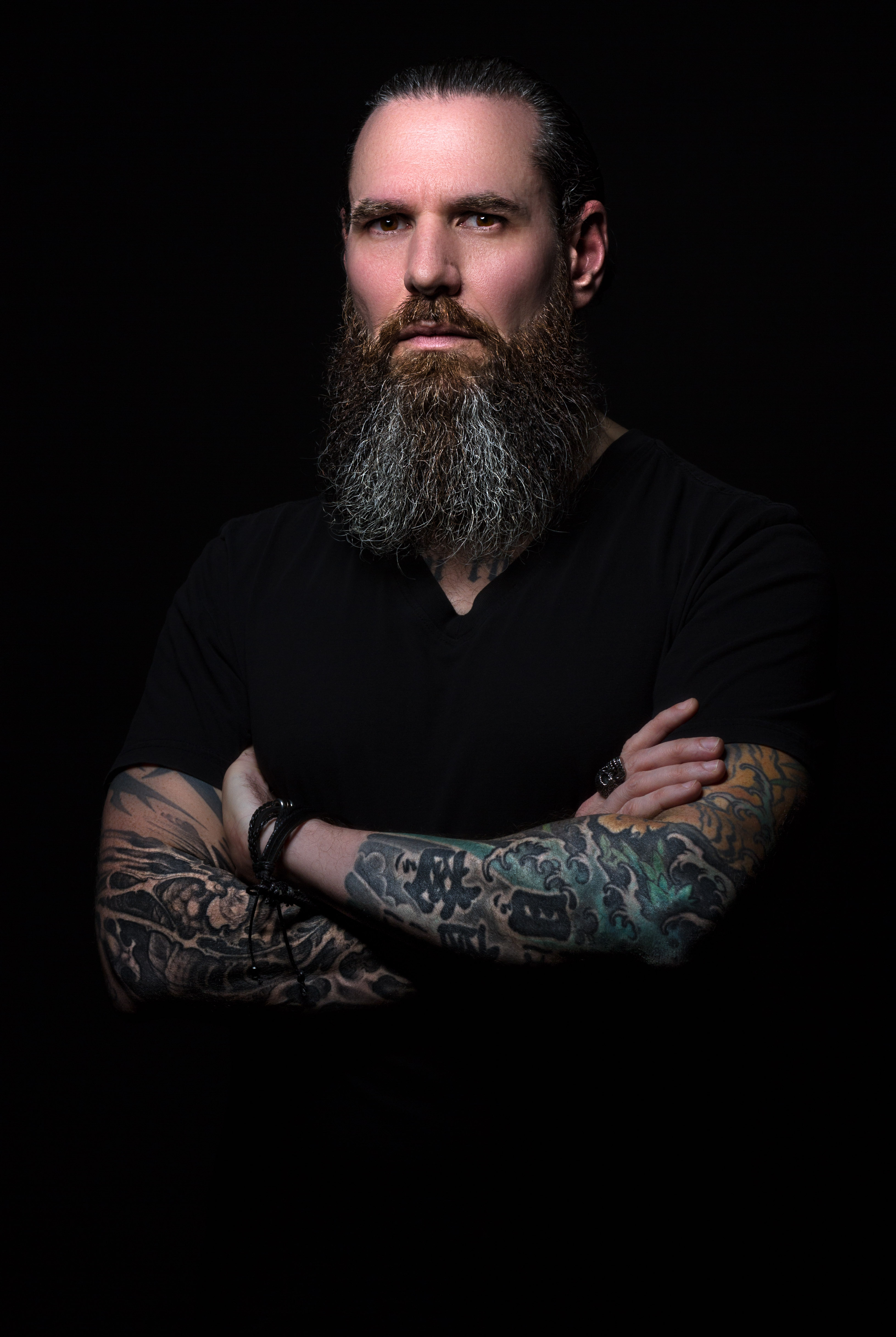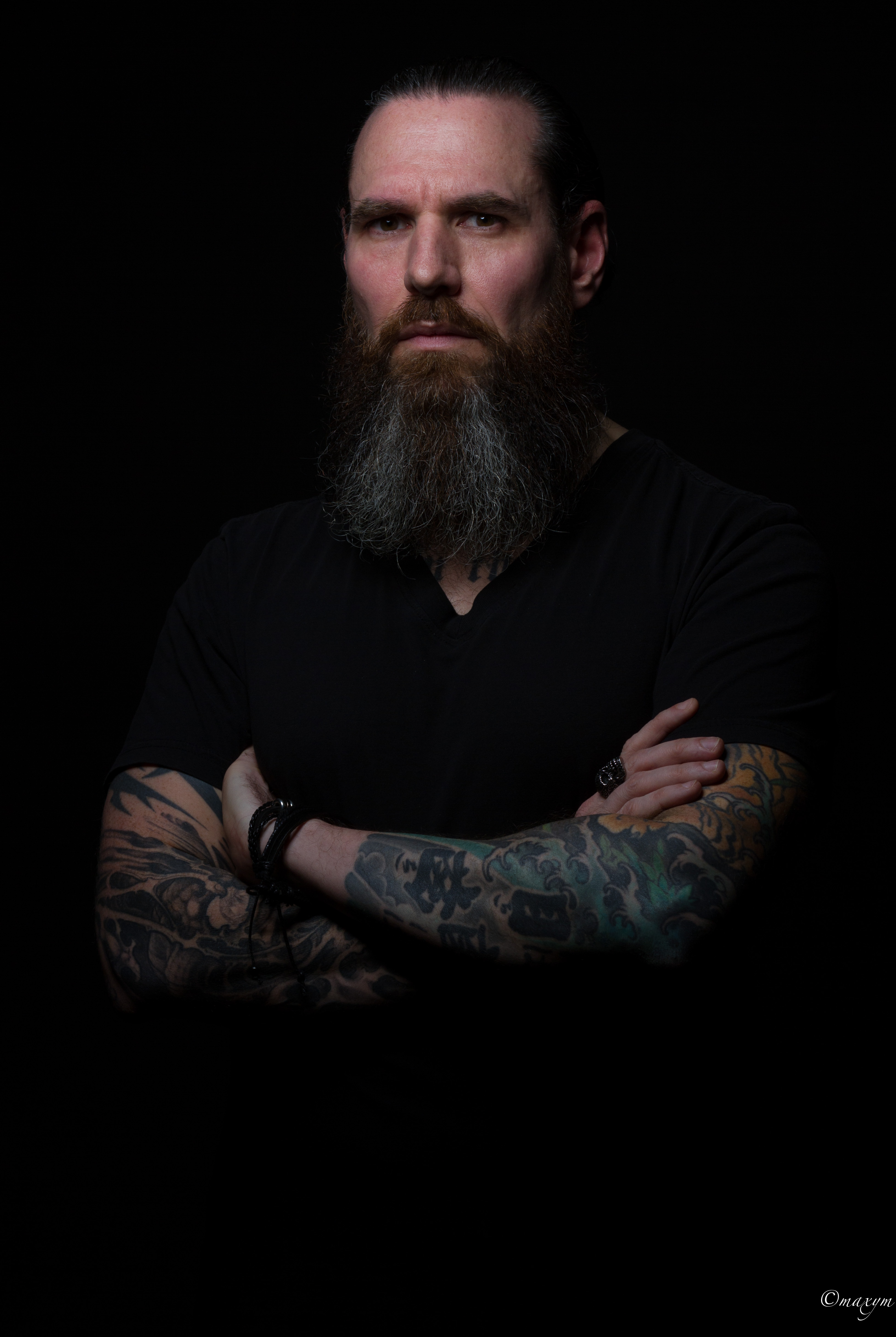 Pour ce qui est de la texture, y a que tres tres peu de traitement. La lumiere, oui y avait des zones trop eclairées que j'ai corrigé au PT. Pour ce qui est de la clarté, il n'y a pas de traitement sur le visage, mais juste la barbe et les yeux.