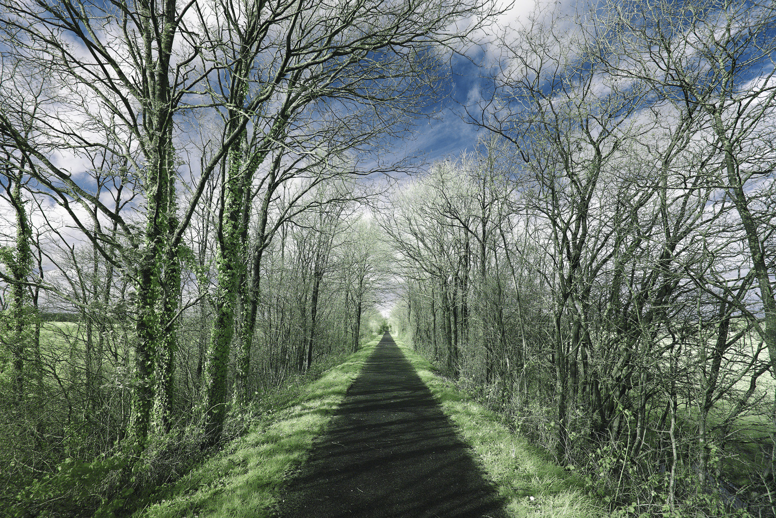 Posté(e) 31 mars 20169 a comment_70073 C'est encore moi! Outre l'infrarouge, j'ai testé un nouveau filtre original sur full-spectrum : le Hoya U340. Ce filtre fait parti de la catégorie "UV passing", qui laisse donc principalement passé les UV de 340nm à 400nm, ainsi qu'un tout petit peu d'infrarouge autour de 700nm. Ce filtre est conçu pour réaliser des photos en ultraviolet sous couvert d'utiliser un objectif avec peu d'éléments et peu de traitement anti-UV, bref de vieux objectifs. Comme le 16-35 F/4 IS est très récent, la quantité d'UV arrivant au capteur est très faible, presque autant que la quantité d'IR traversant le filtre. Le mélange de ces deux domaines produit l'effet suivant : Le bleu du ciel est très sombre, comme en infrarouge, du coup les nuages ressortent énormément. La végétation est plus claire, comme en IR, créant une plage dynamique particulière. Les UV laissent passer un peu de vert, qui vient colorer la végétation. Au final les couleurs sont proches du rendu en visible, mais l'effet ir est perceptible. Qu'en pensez-vous?