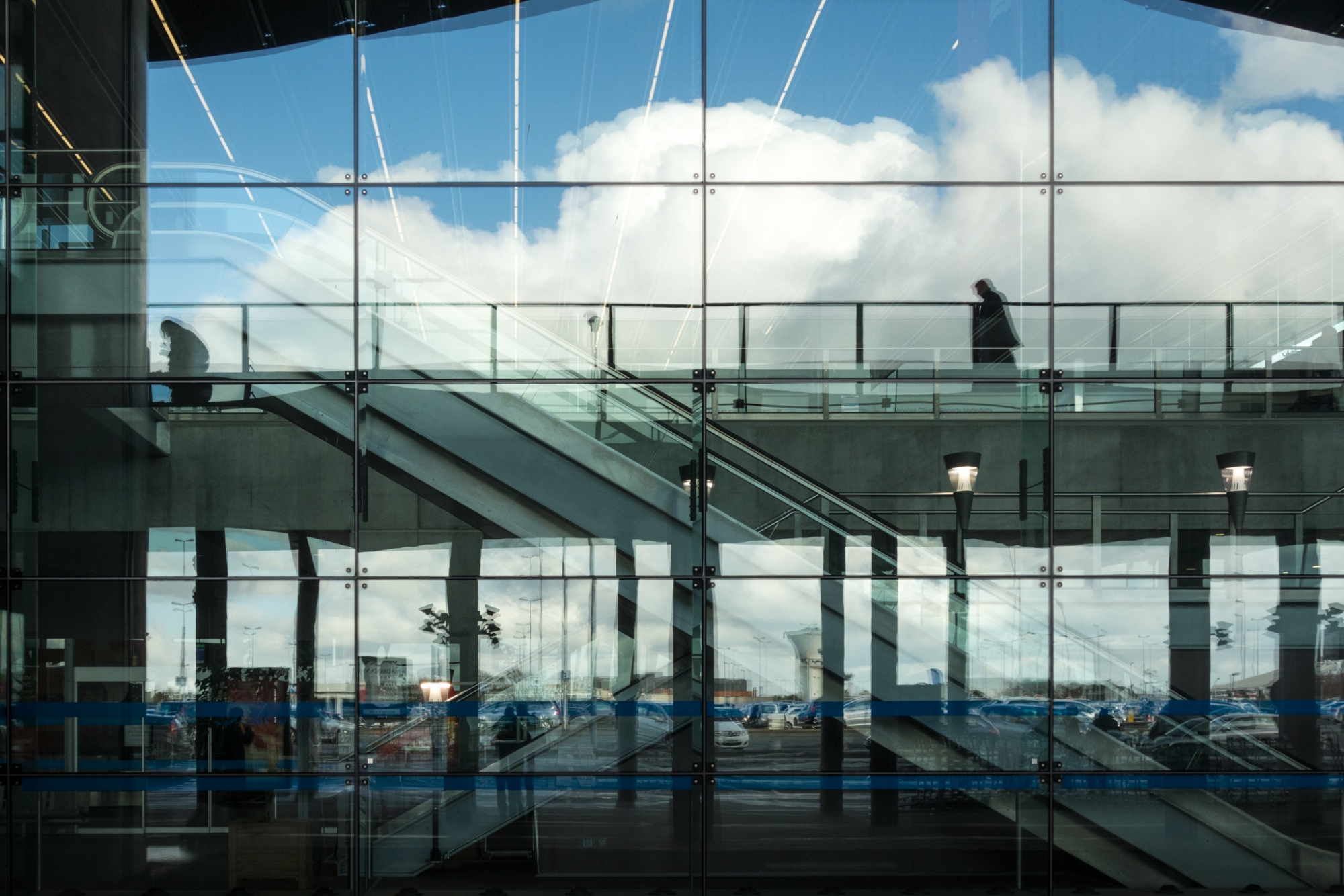 Posté(e) 14 avril 20169 a comment_70810 Hello, Je suis d'accord avec @kermittou. Les nuages coupés par les vitres perturbent un peu la lecture mais tu peux facilement gommer ça je pense. Entre la 1 et la 2 je dirai que la 2 raconte plus de choses car il y a deux personnes qui véhiculent une notion temporelle qui est moins évidente sur la une mais c'est assez perso. Après la 1 met plus en évidence l'escalier mais reste un peu plus photo d'"archi". Tout ça pour dire qu'en fait la 3 marche super bien ! J'assombrirais les silhouettes un peu. A+