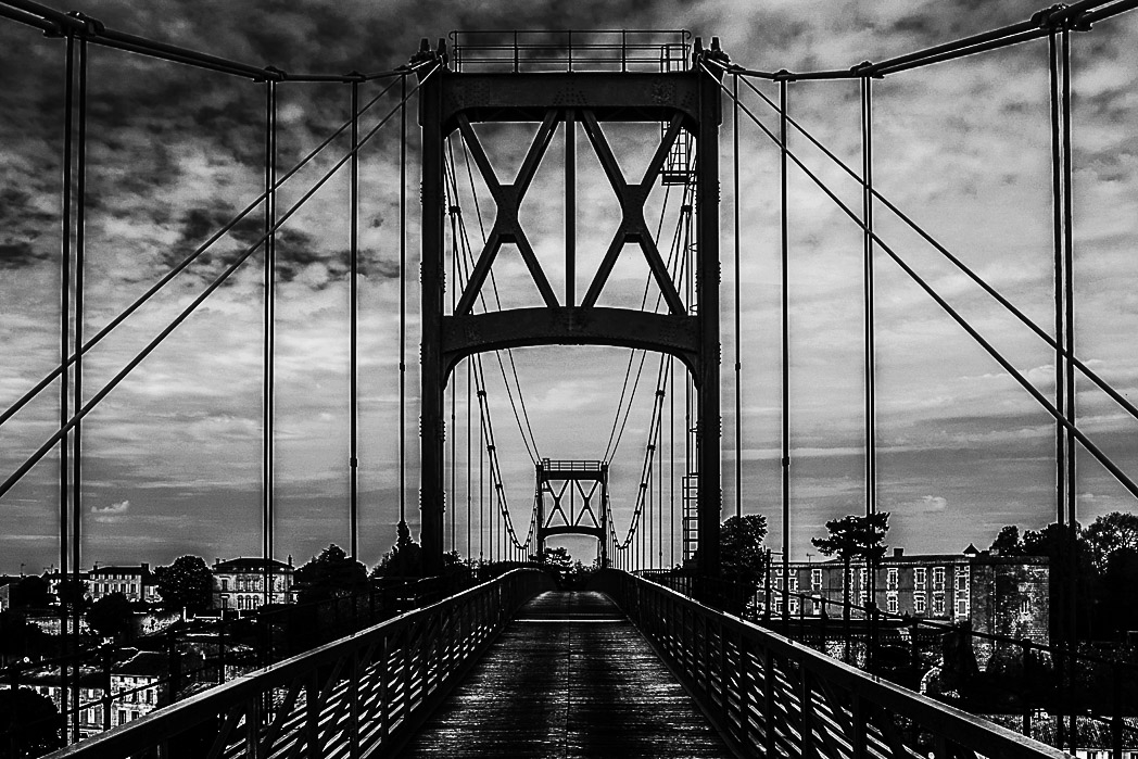 Posté(e) 8 septembre 20169 a comment_75248 Il y a bien longtemps que je n'ai pas posté, mais comme c'est l'AG ce soir, faut quand même que je justifie ma présence parmi vous La photo a été prise au printemps au pont de Tonnay-Charente https://fr.wikipedia.org/wiki/Pont_suspendu_de_Tonnay-Charente La météo n'était vraiment pas terrible et je suis parti d'un réglage assez farfelu sur mon appareil J'ai gardé la photo pour le cadrage et j'ai un peu poussé en PT, notamment pour contraster. Pas super convaincu au final. Voilà, à vos avis. Merci