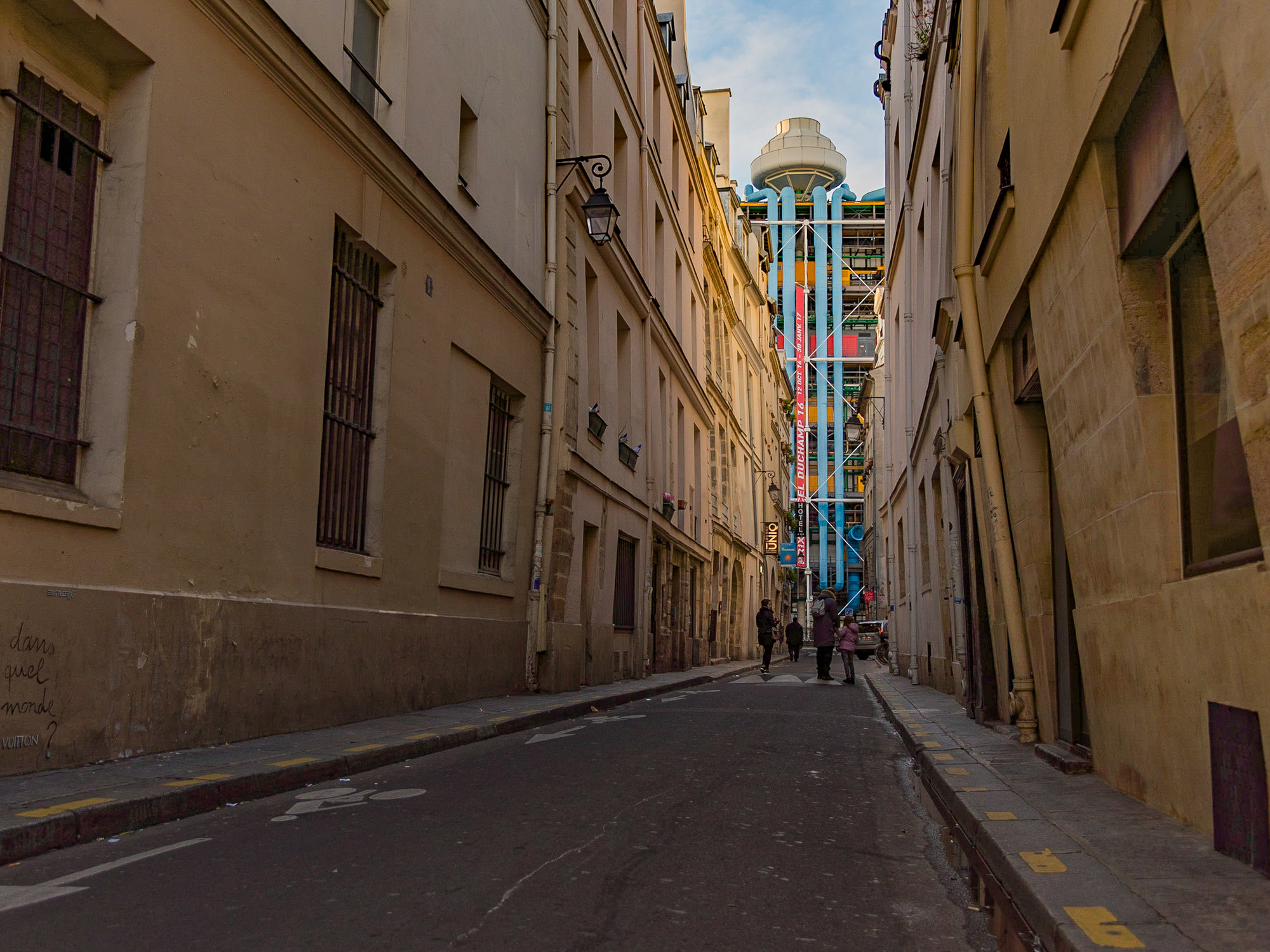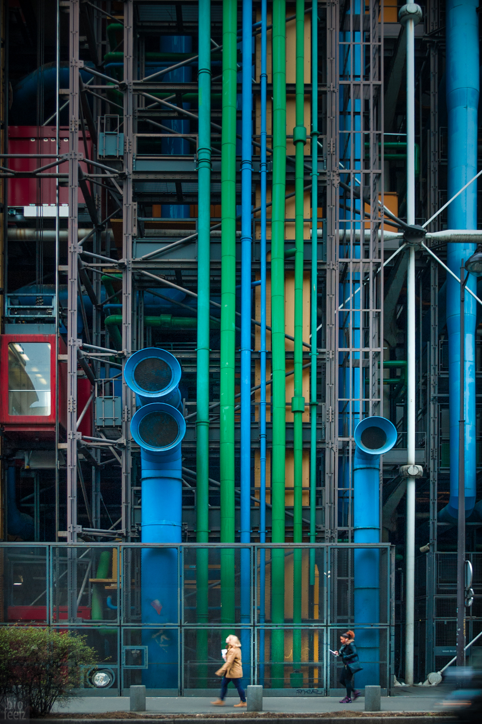 Posté(e) 14 décembre 20168 a comment_77658 Voici ma participation à ce défi. Après en avoir fait le tour, mon regard sur le centre Pompidou s'est arrêté sur l’arrière du bâtiment où toute la plomberie est apparente. Des couleurs verticales, une perspective un peu redressée et des passantes pour donner une échelle de grandeur... Nikon D70 + Nikkor 18-55mn 1:3.5-5.6 G. ISO 400, 28mn, f/5.6, 1/40s.