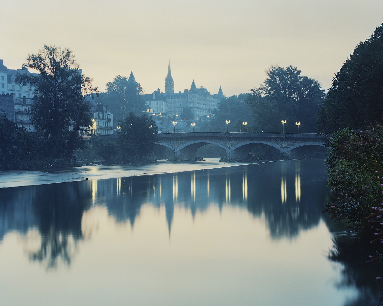 Posté(e) 31 août 20187 a comment_86032 Vue de la vielle ville de Pau depuis les bords du Gave au lever du soleil. Première prise en main du Mamiya RB67 pendant les vacances. L'objectif utilisé est un 90mm, soit un équivalent 45mm sur FF.