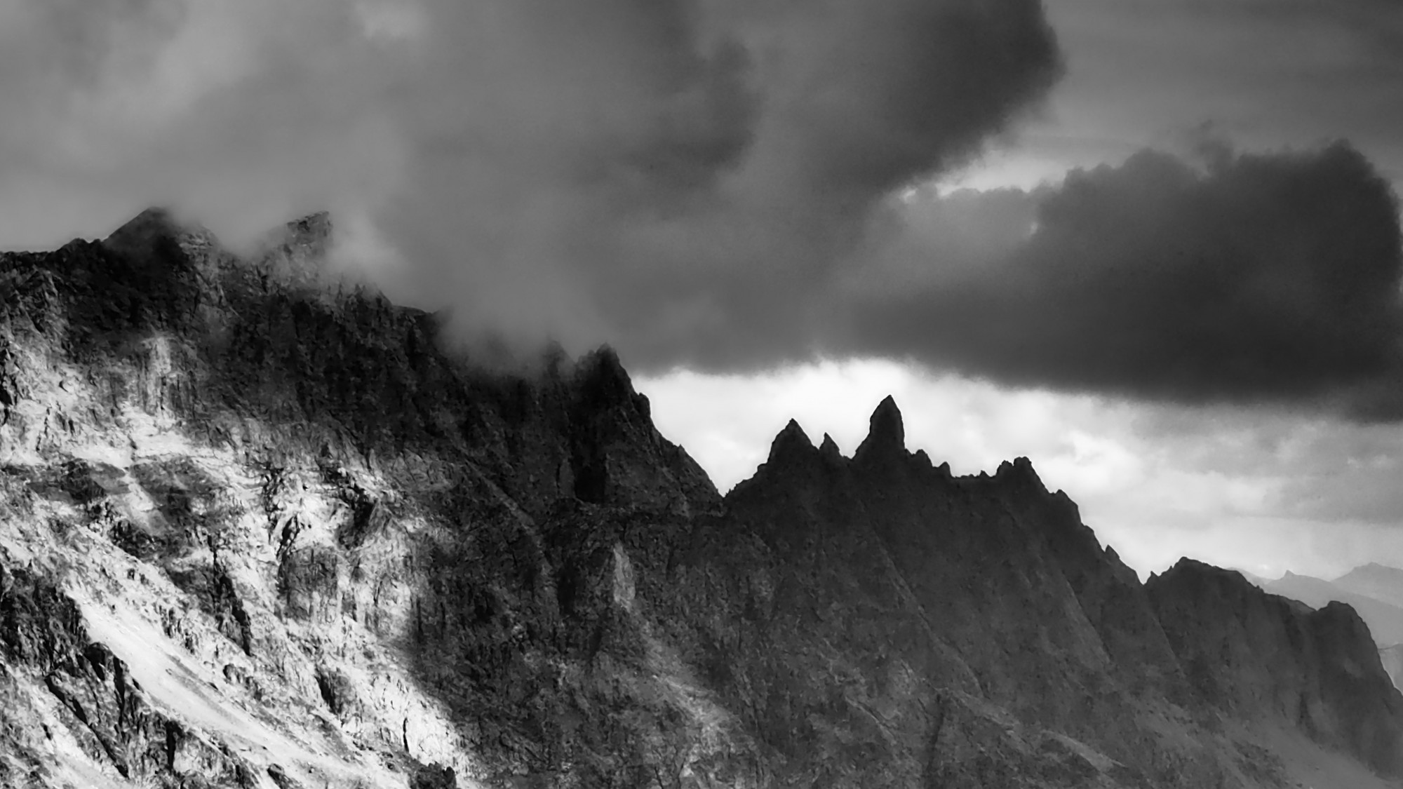 Posté(e) 21 septembre 20187 a comment_86266 Salut, Niveau compo et ambiance, la partie droite fonctionne très bien, avec ces cimes dans l'ombre et ces gros nuages noirs. Du coup la partie gauche vient casser le côté dramatique en éclairant une partie de la paroie. En l'état je recadrerais en format 3/2 à droite pour éjecter cette zone. Niveau qualité d'image, les détails semblent avoir été mangés par une réduction de bruit ou un lissage très poussés, et l'image souffre de nombreux artefacts.
