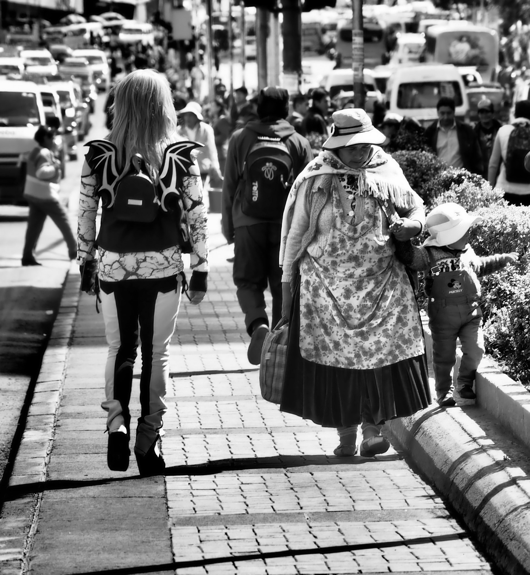 Posté(e) 30 juin 20196 a Auteur comment_88340 Bonjour ca me fait plaisir que quelqu’un trouve cette photo top. Je voyais à La Paz cette punkette surréaliste avancer dans une avenue et je cherchais le bon moment pour la prendre en photo malheureusement de dos. Et puis cette femme en costume traditionnel a commencé à remonter la même avenue pour la croiser avec son petit garçon. J’ai près couru et traversé n importe comment la rue pour ne pas être trop loin quand elles se croiseraient. Le noir et blanc me paraissait évident pour se focaliser sur elles deux. le décalage entre ces deux femmes et probablement leur deux vies me paraissait très fort. j’avoue être fière de cette photo...
