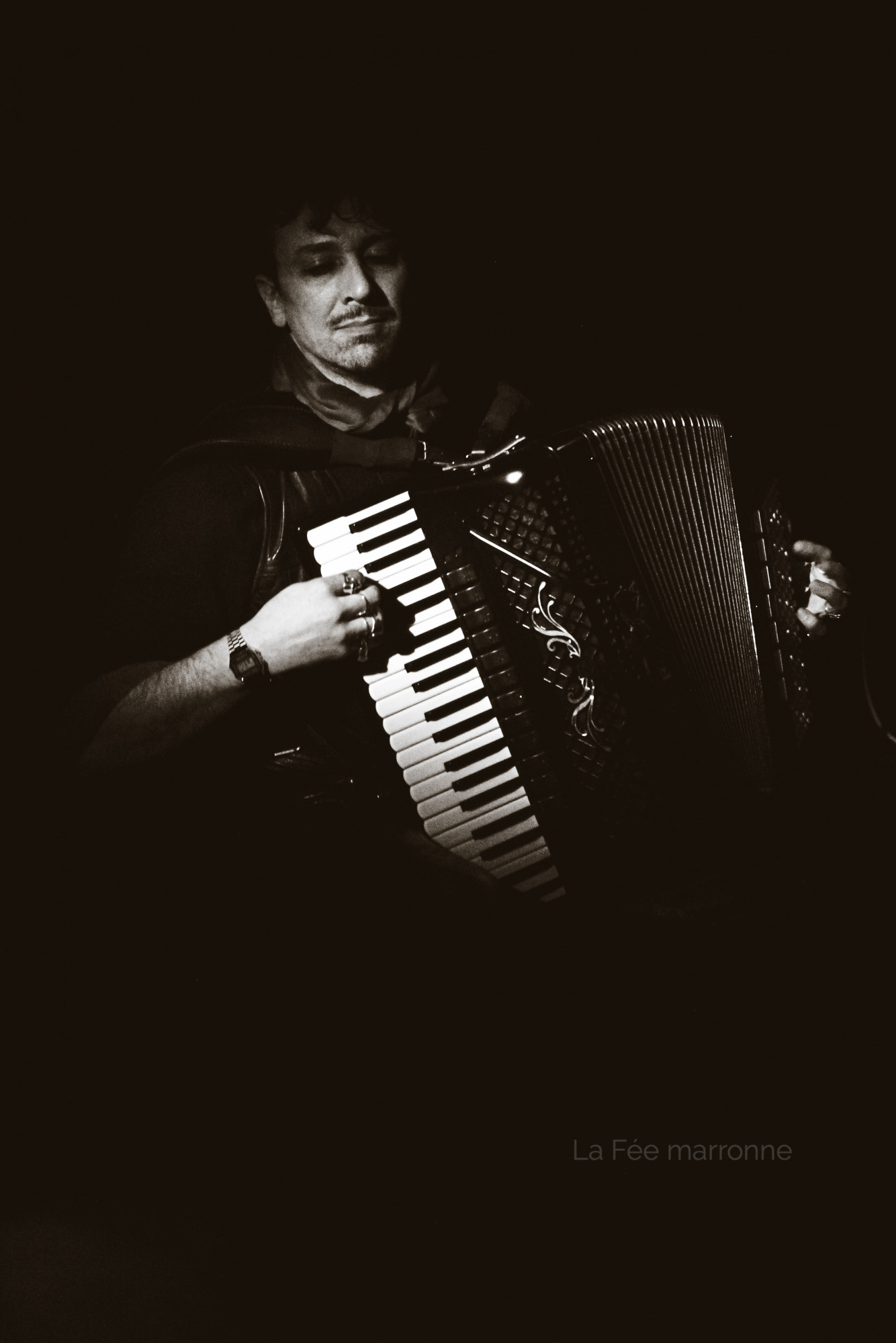 Posté(e) 12 février 20205 a Auteur comment_89803 @Mline Dans le principe on a fait tous le même type de photos. C'est logique puisqu'on assisté au même spectacle. J'aime bien tes 3 premières photos surtout la première ( le N&B est une excellente idée ). Quant aux 2 suivantes, elles mériteraient à être éclaircies et la dernière assombrie ('au niveau du corps avec un filtre radial ) pour mieux se rendre compte de son potentiel. Dans le même genre que ta dernière photo, j'ai réalisé la photo qui suit. Cela fait 3 fois que je vois cette artiste dans cette salle. Chaque fois, les conditions d'éclairage sont très défavorables pour les photographes. J'ai regardé tes photos sur Google drive. J'en ai sélectionné plusieurs qui ont du potentiel ( voir copies jointes ). personnellement, j'essaierai de neutraliser la couleur bleu / violet très saturée, due aux projecteurs. Par ailleurs, d'autres photos sont intéressantes ( fille avec les cheveux en mouvement). En revanche certains visages sembles " cramés". Il faudrait essayer d'assombrir les zones en cause ( filtre radial ). Tu semble regretter de n'avoir pas pu mettre beaucoup de photos sur le Forum. En fait, je suis convaincu que c'est un avantage. A mon avis, il ne faut pas inonder de photos au risque que les moins bonnes déservent les meilleures. Je suis convaincu qu'il faut être très sélectif. Dans ce type de soirée, je prends 600 photos pour n'en retenir au maximum 50.